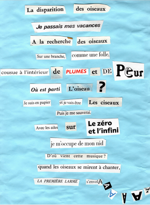 Quand le syndrome de la page blanche guette, pourquoi ne pas tenter de le franchir par la surprise, la rencontre hasardeuse et parfois inédite de mots auxquels nous n’aurions pas pensé ? Par l’association libre de mots ou de phrases découpées, le collage littéraire se présente comme une manière visuelle et intuitive de créer des textes, plaçant la poésie à portée de toute paire de ciseaux.