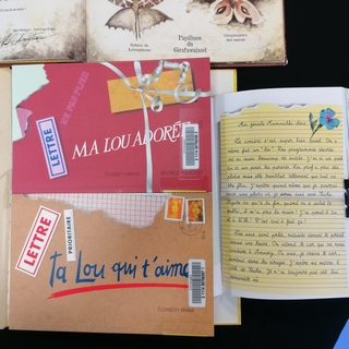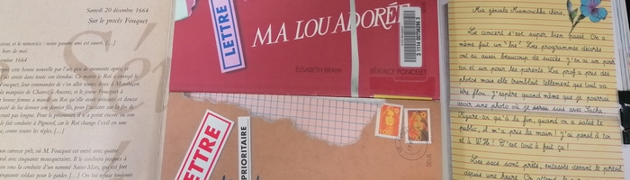 des livres composés entièrement ou partiellement de lettres, avec un destinataire, une signature, et parfois un "post-scriptum", comme les romans épistolaires autour du personnage de Lou, d'Elisabeth Brami, illustrés par Beatrice Poncelet : Ta Lou qui t’aime, Ma Lou adorée, etTrois fois Lou.