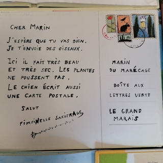 certains livres dont le format et la couverture aussi imitent les lettres timbrées et tamponnées, comme Lettre des îles Baladar de Jacques Prévert, illustrées par André François.