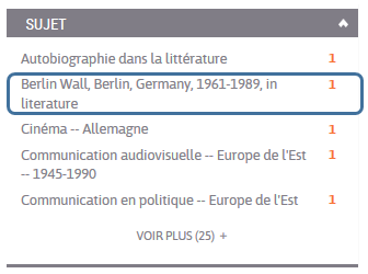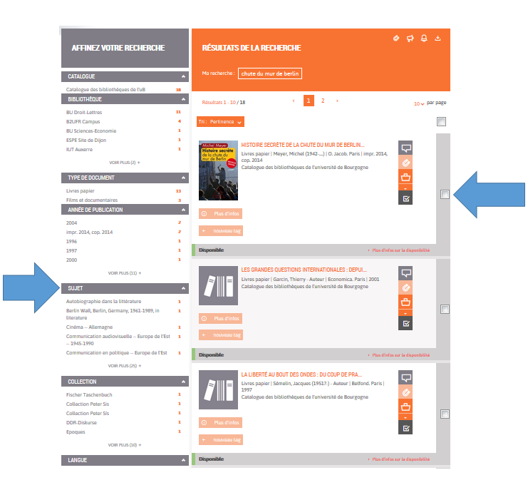 Pour affiner la recherche, utilisez les facettes, dont les plus utiles sont Sujet et Langue.