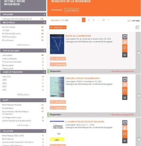 A droite, s’affiche la liste des résultats et à gauche, les possibilités d’affiner la recherche.