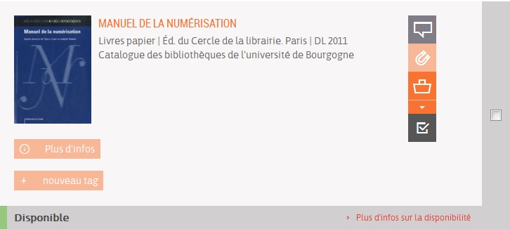 Plus d’infos sur la disponibilité vous renseignera sur les possibilités d'emprunt.
