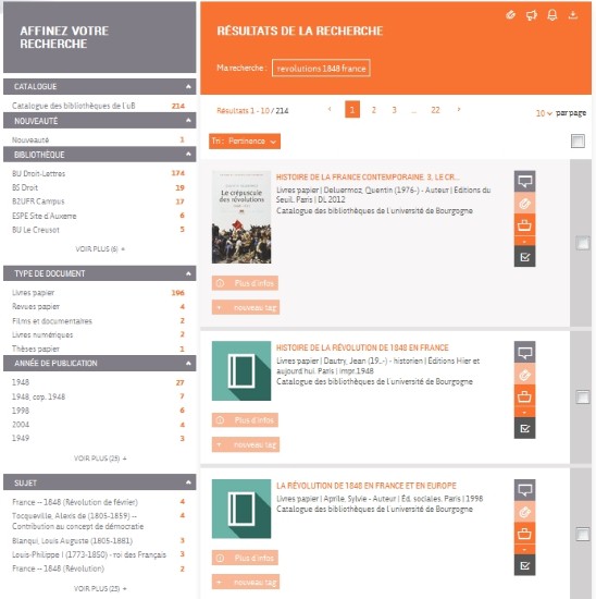 Pour affiner la recherche, utilisez les facettes dont les plus utiles sont Sujet et Langue.
