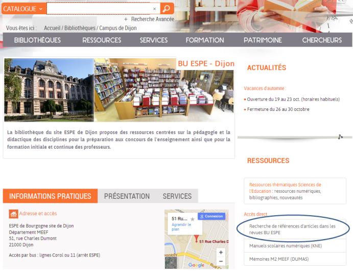 Chaque BU INSPE propose une base d'articles, dans notre exemple il s'agit de la base de la BU INSPE Dijon.
