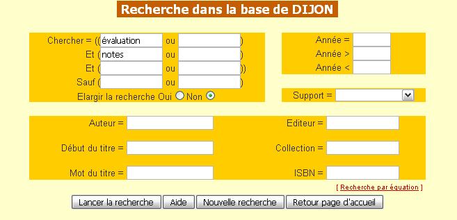 Le titre du document contiendra le mot « évaluation » et dans la notice bibliographique (la fiche du document au catalogue) figureront les mots « apprentissage » et « élèves ».