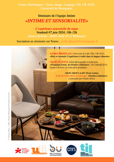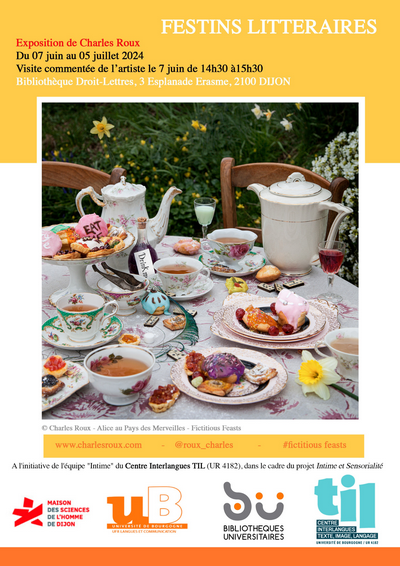 La BU Droit-Lettres vous propose l’exposition « Festins littéraires » en partenariat avec le Centre Interlangues Texte Image Langage (TIL) en marge du séminaire "Intime et sensorialité" à la Maison des Sciences de l’Homme le 7 juin 2024.